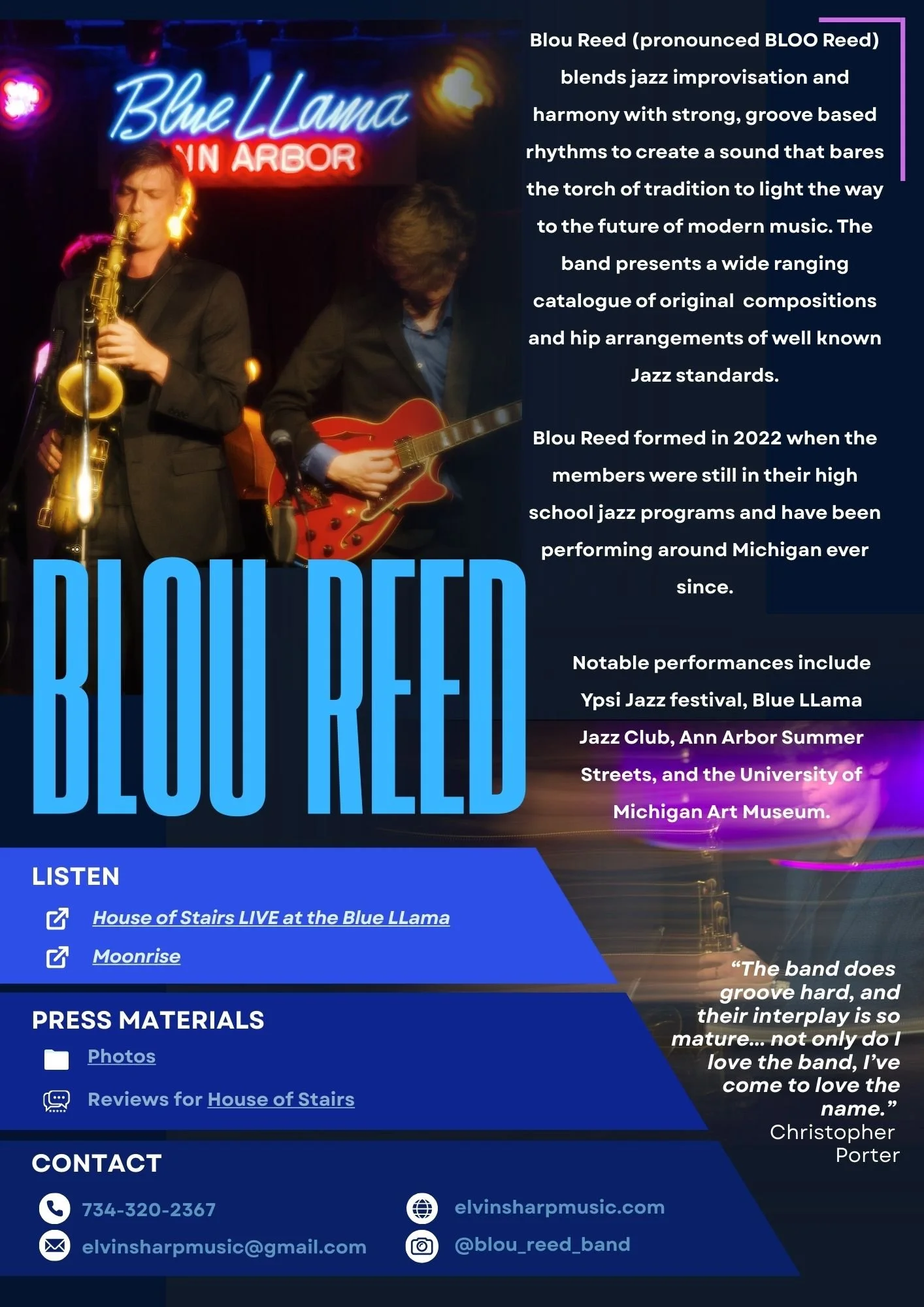 Electronic Press Kit House of Stairs LIVE at the Blue LLama - Click Here Moonrise - Click HerePhotos - Click HereReviews for House of Stairs - Click Here